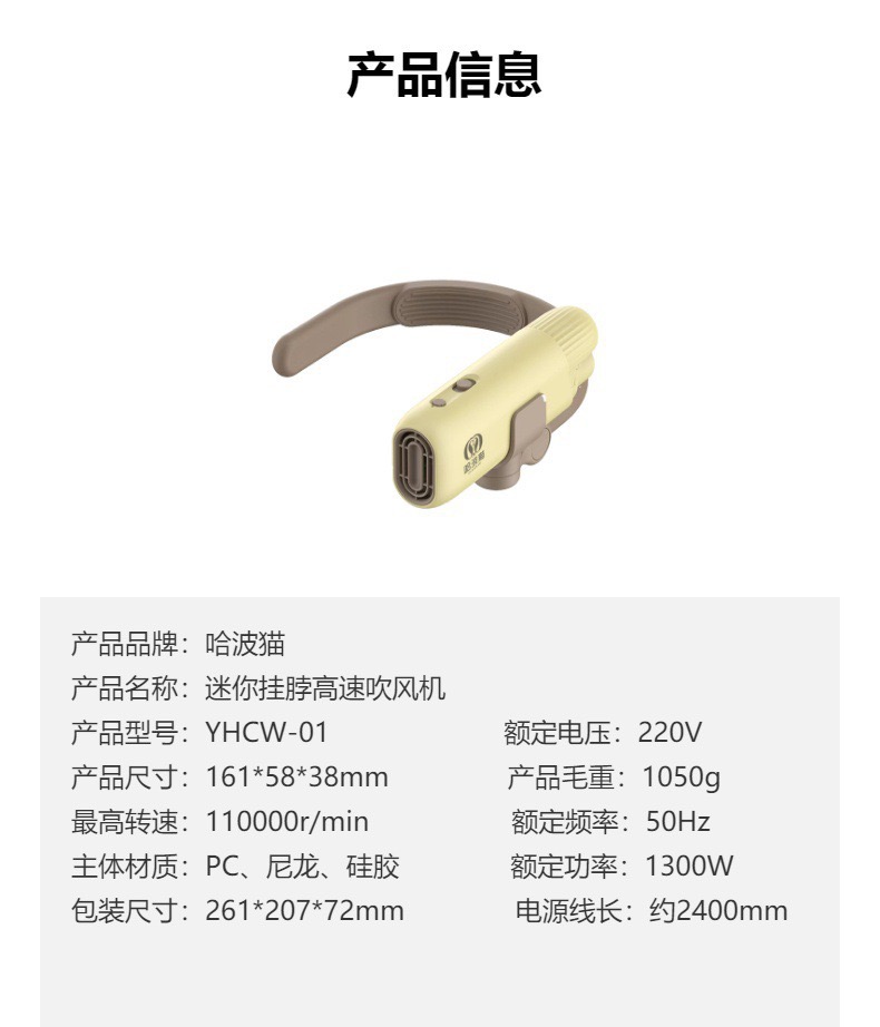 - Model: 挂脖吹风机
