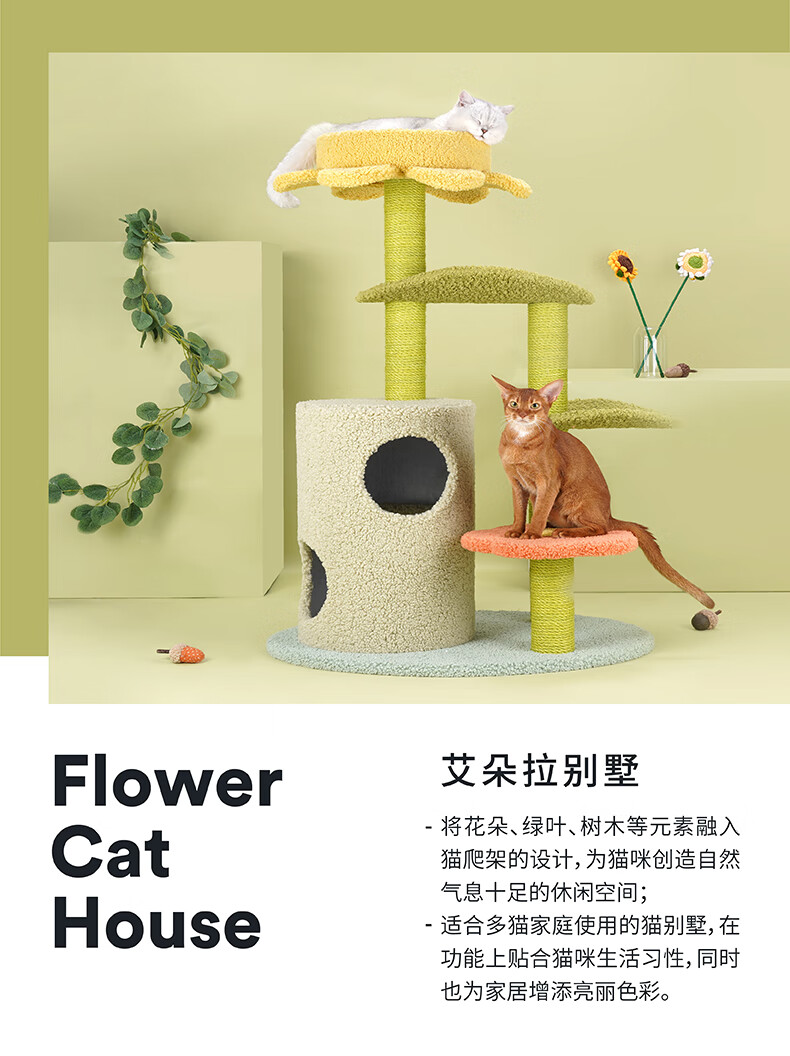 Okvir za penjanje za mačke i krevet za mačke integrisani u drvo za mačke