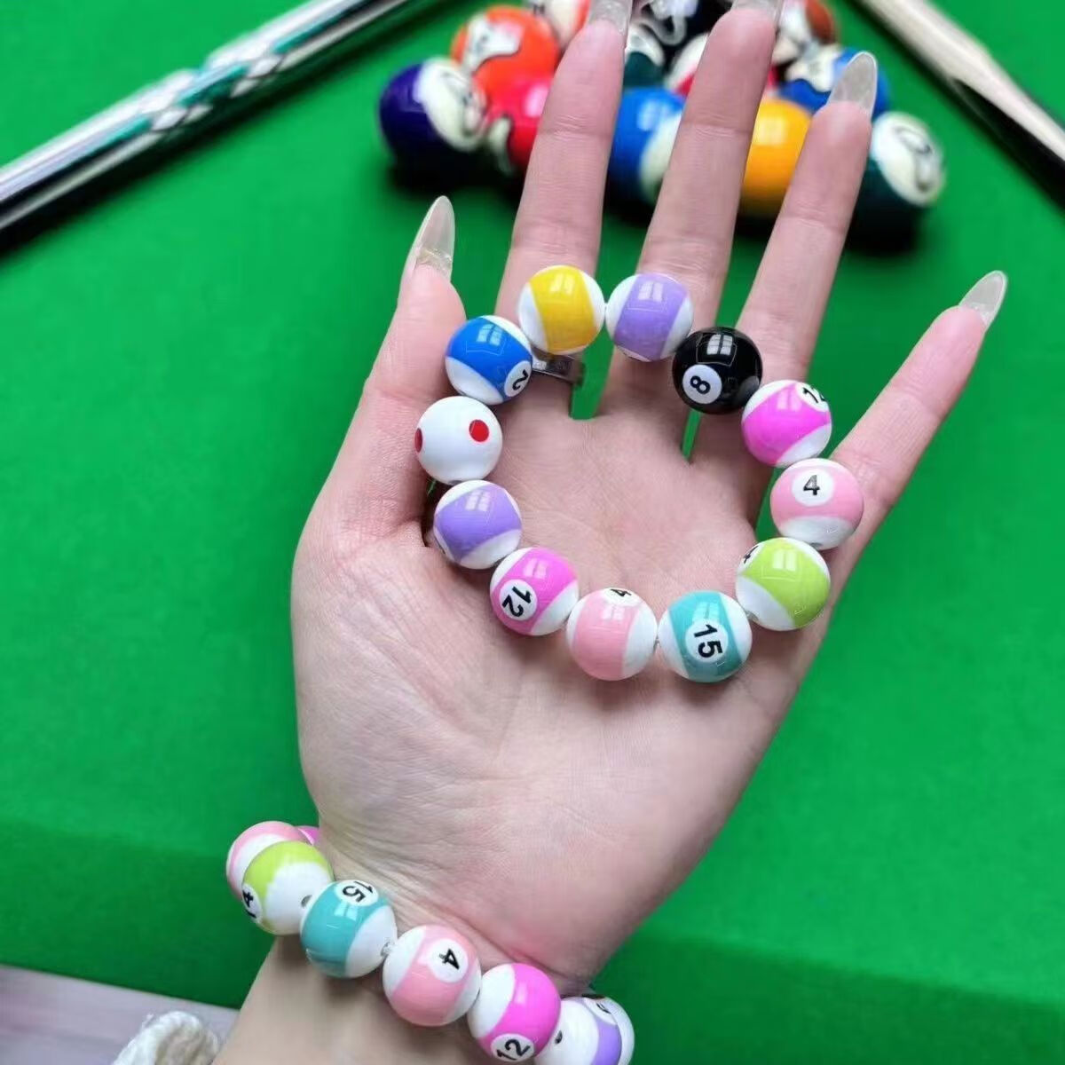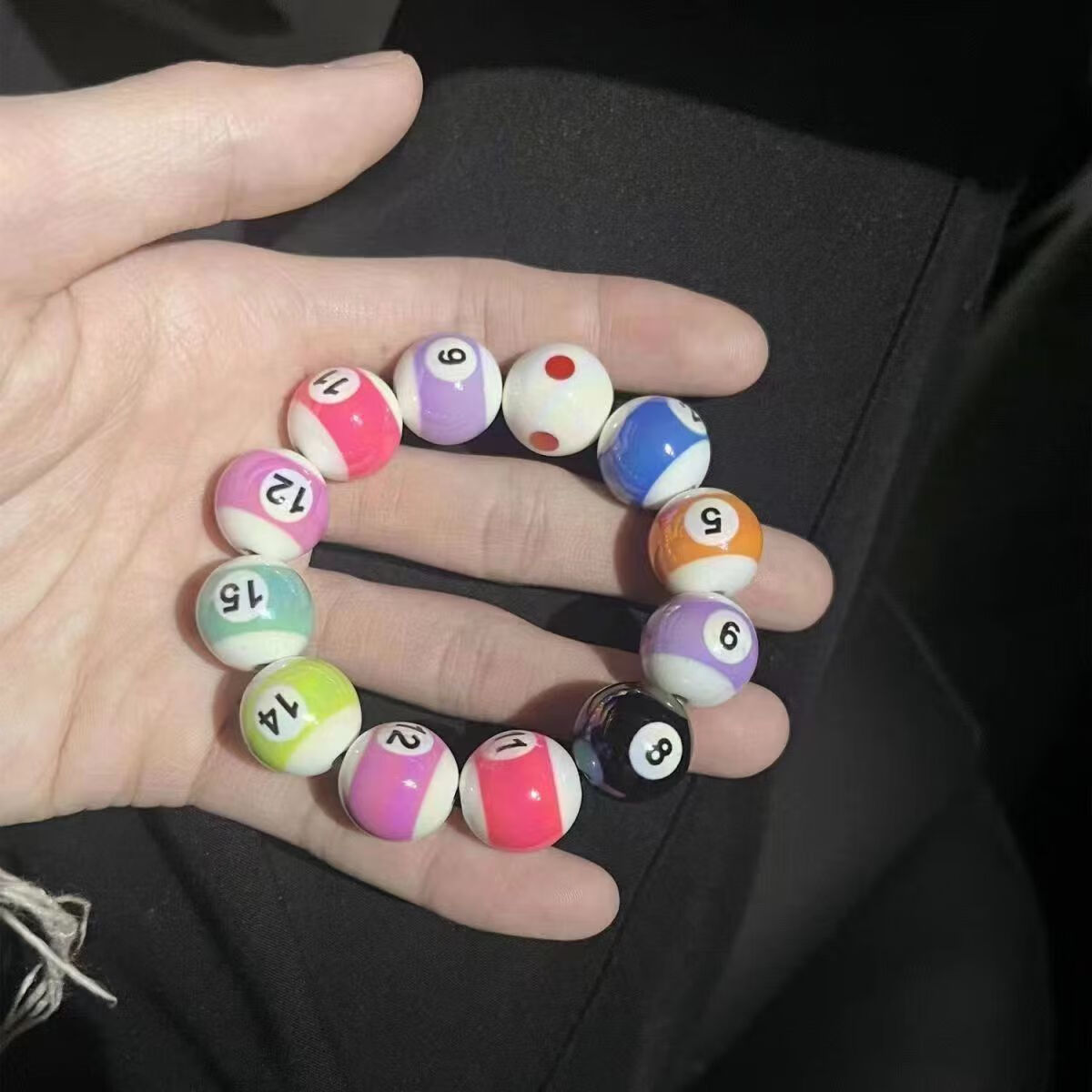 2026 Biliard crna osam narukvica — DIY, 16 perli, 12mm, postojana boja