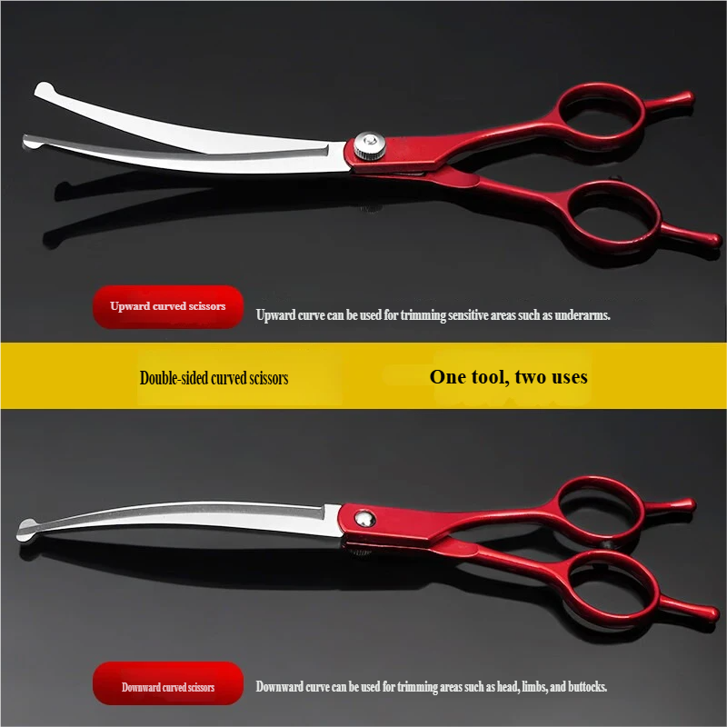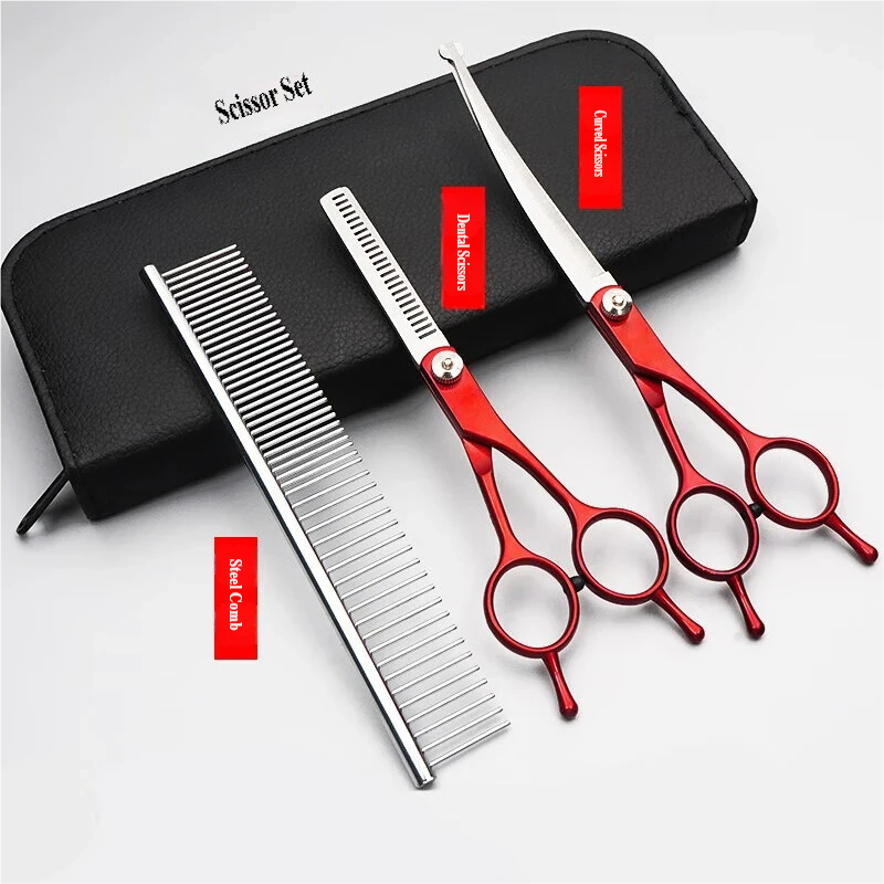 7-inčni set zakrivljenih makaza za negu — Crni, univerzalan za pse i mačke