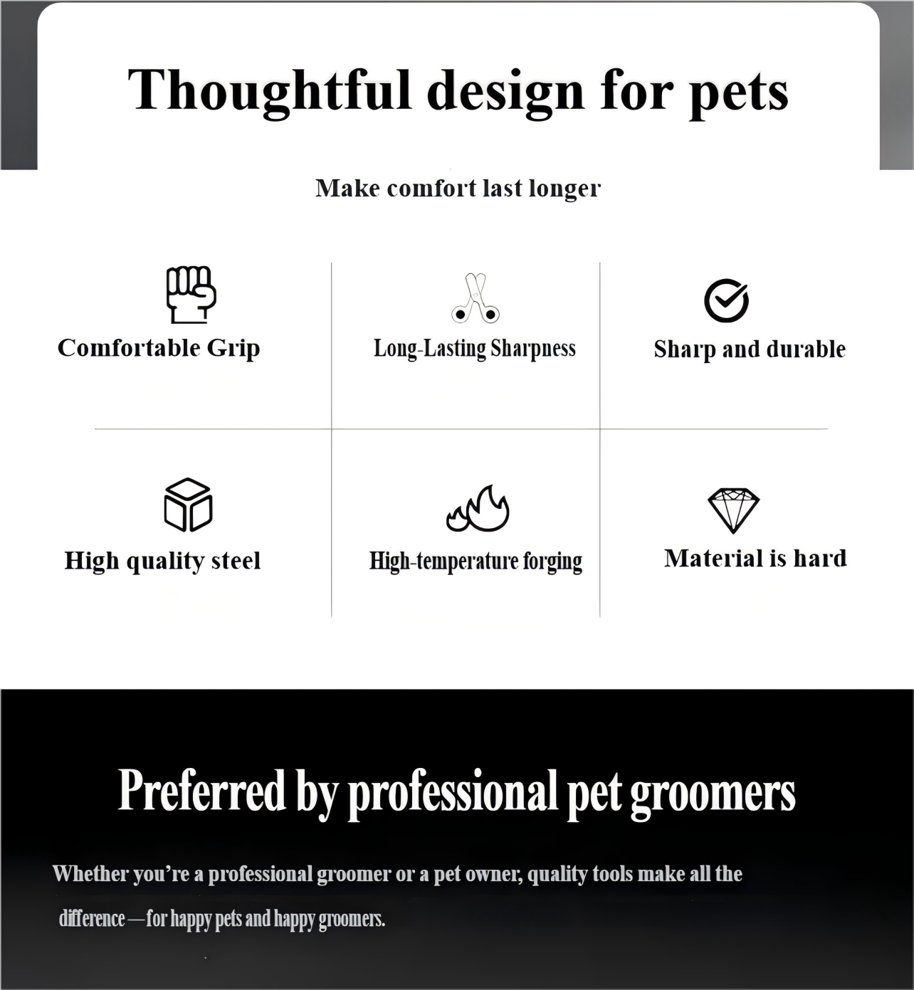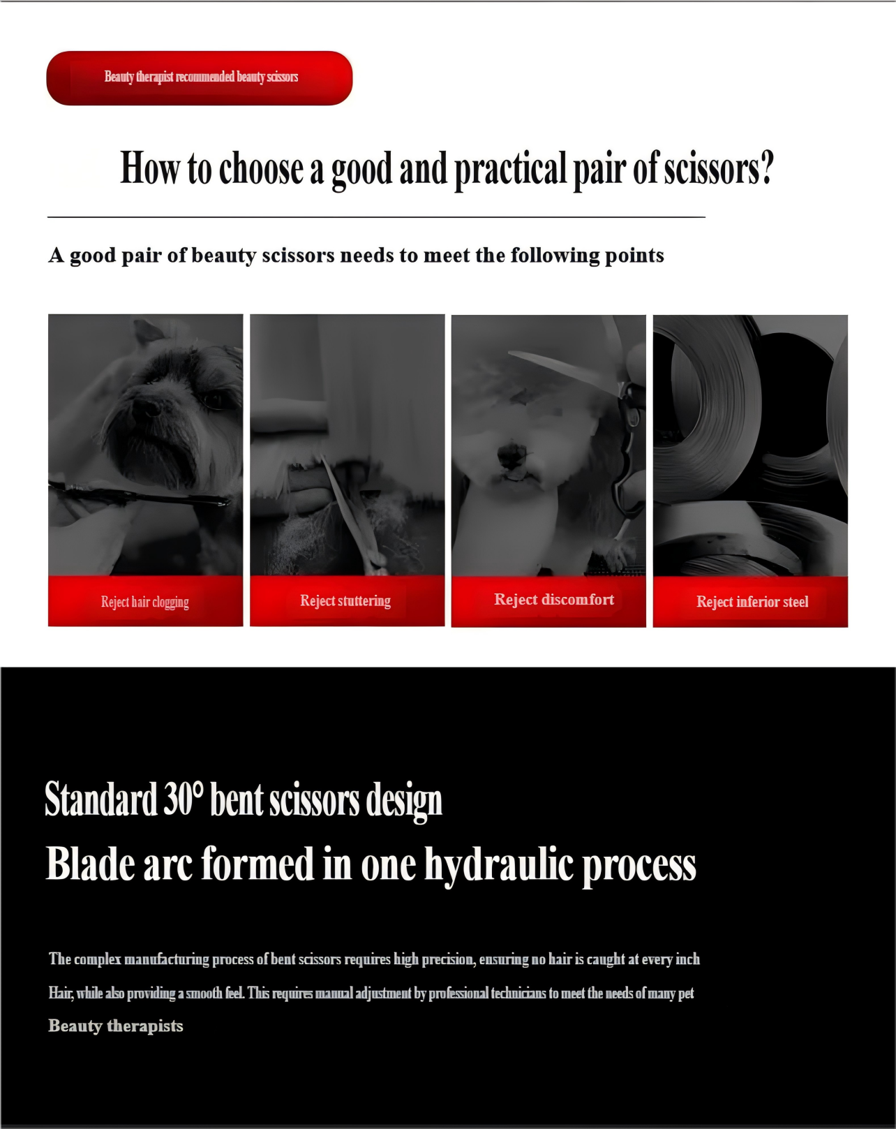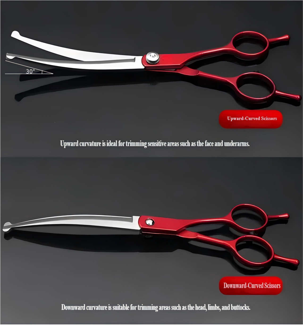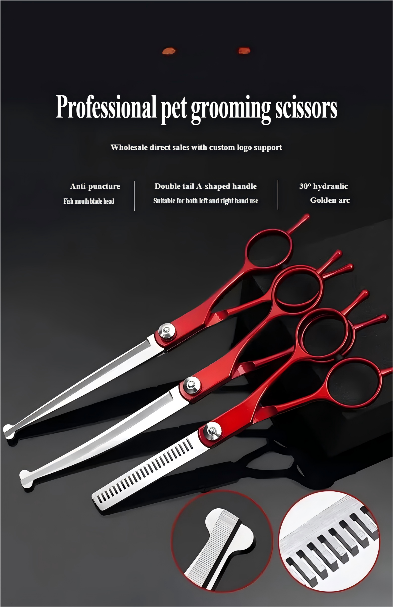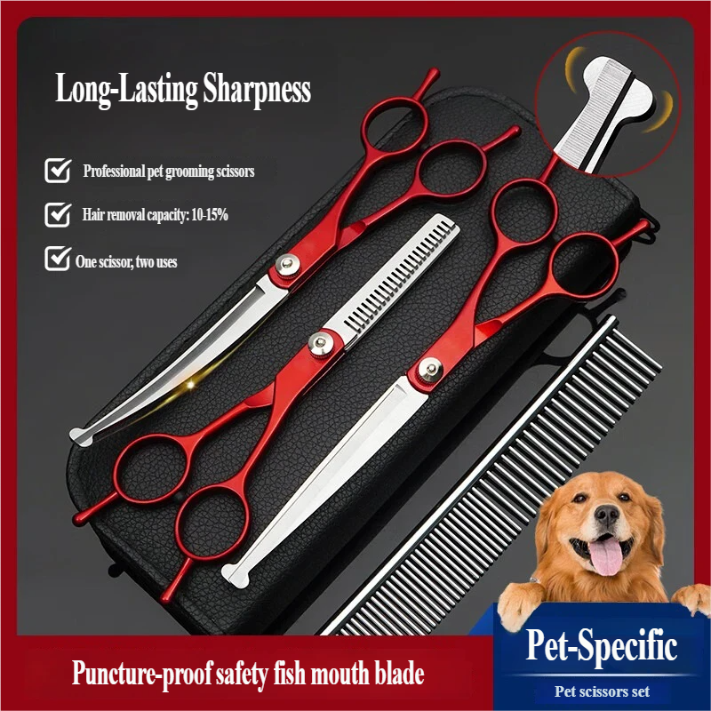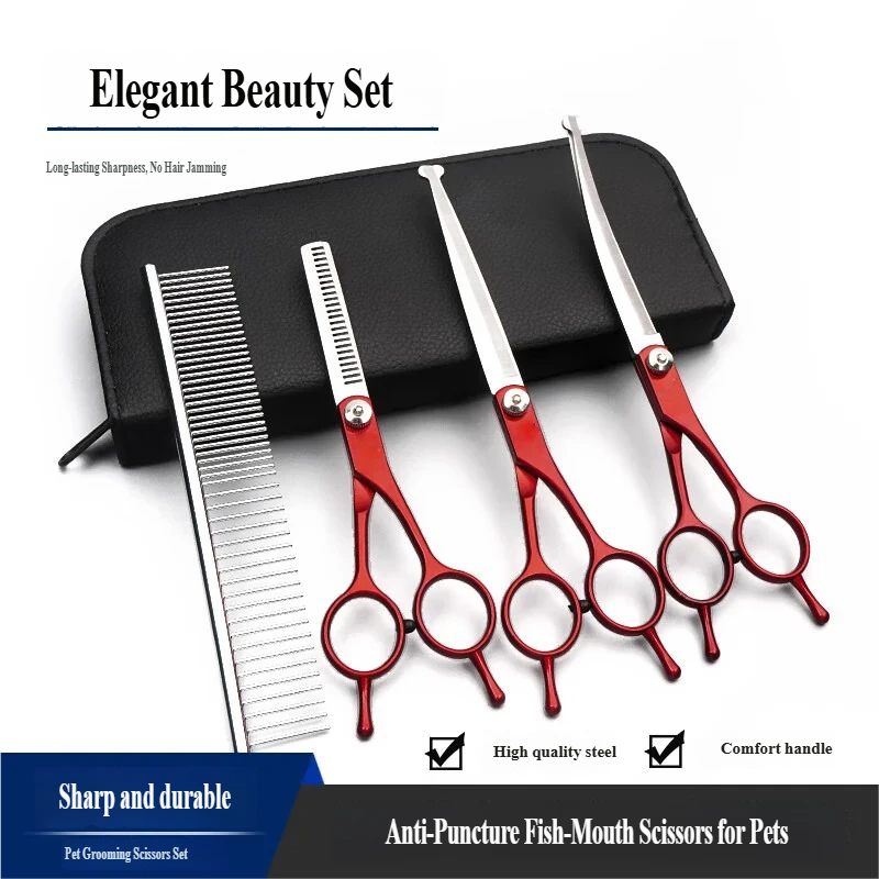 7-inčne makaze za negu ljubimaca — Bezbedan zaobljen vrh, Dizajn ribljih usta