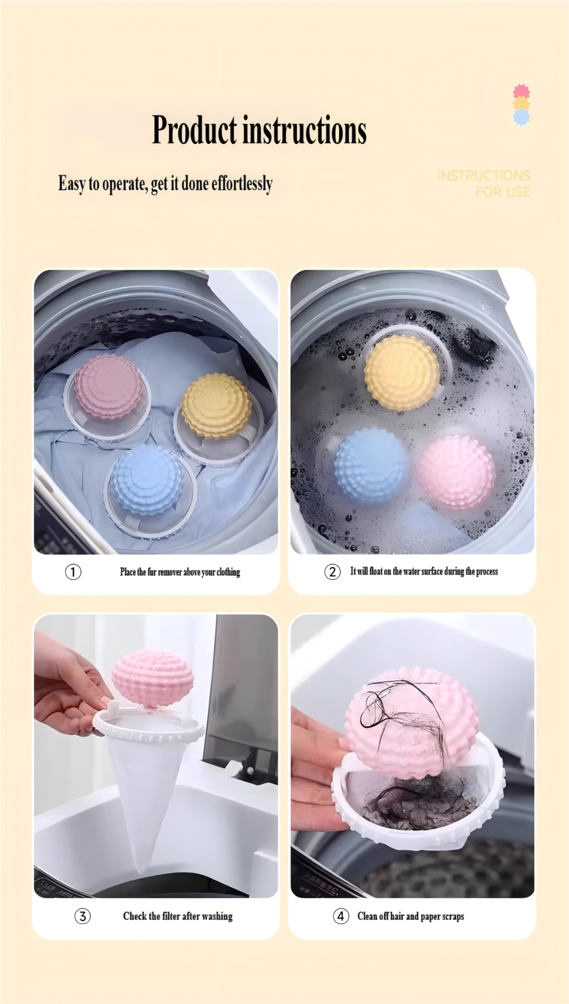 Uklanjač dlake za veš — Uklanja dlaku pasa i mačaka, Filter lopta za mašinu za pranje veša, Čistač dlake ljubimaca za pranje veša