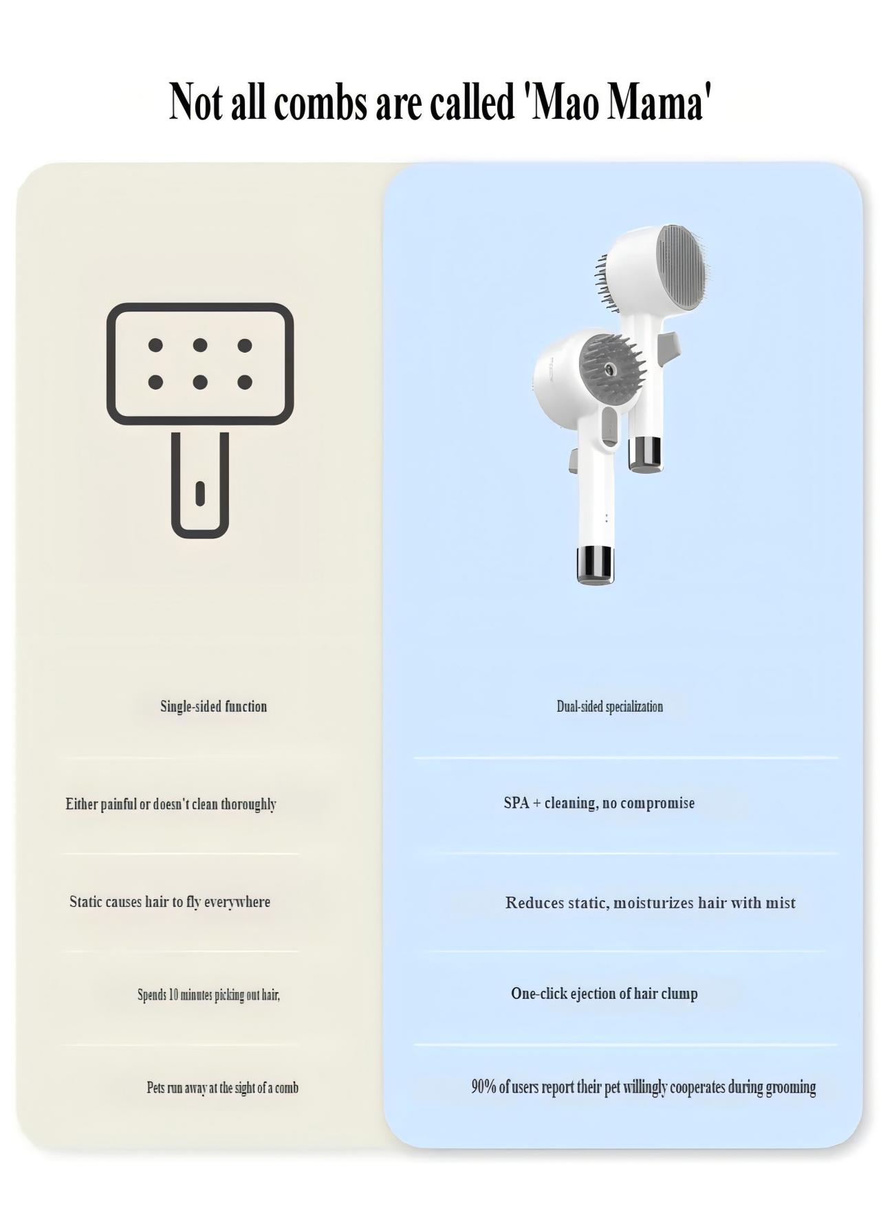 Dvostrana četka sa SPA sprejem za ljubimce, Višenamenski električni češalj za masažu za ljubimce, Dvostrani alat za uklanjanje dlake za mačke i pse