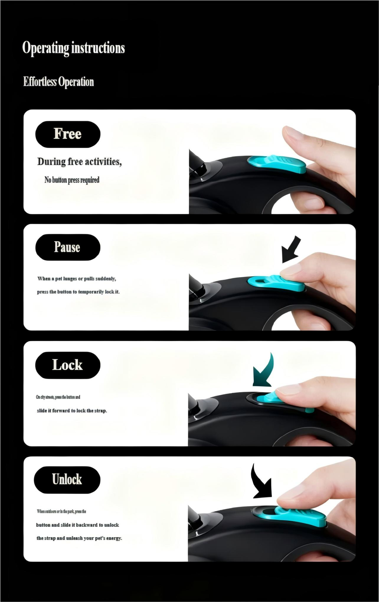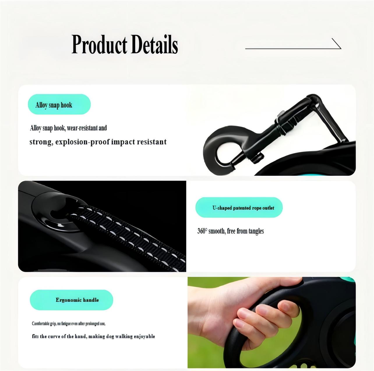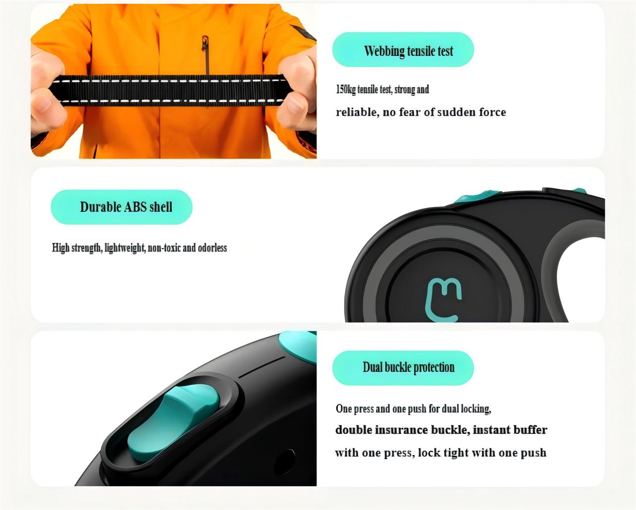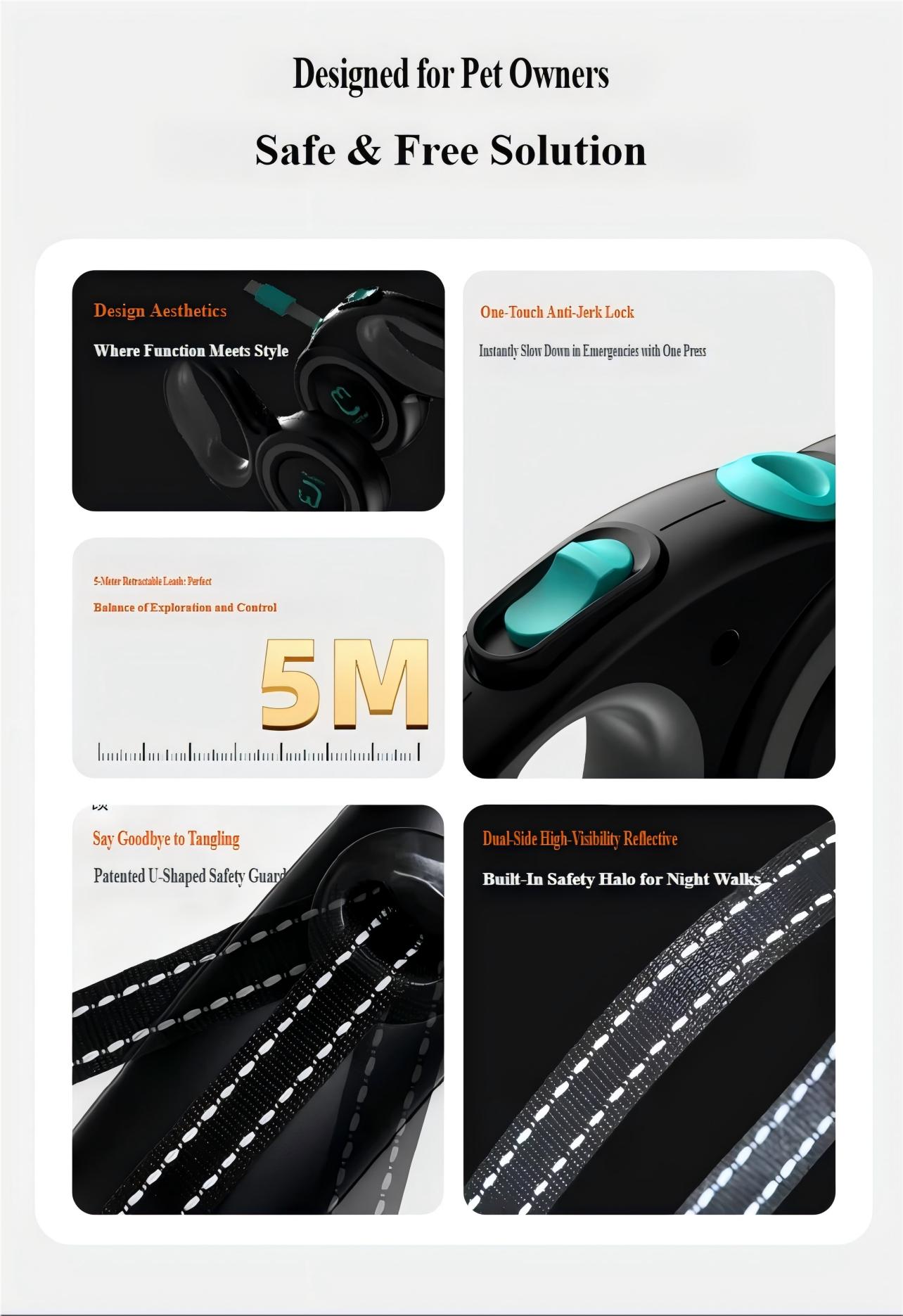 Povodac za pse — Automatski uvlačivi, Podesivi povodac, Protiv trzaja, Reflektujuća traka za šetnju, Automatski uvlačivi povodac
