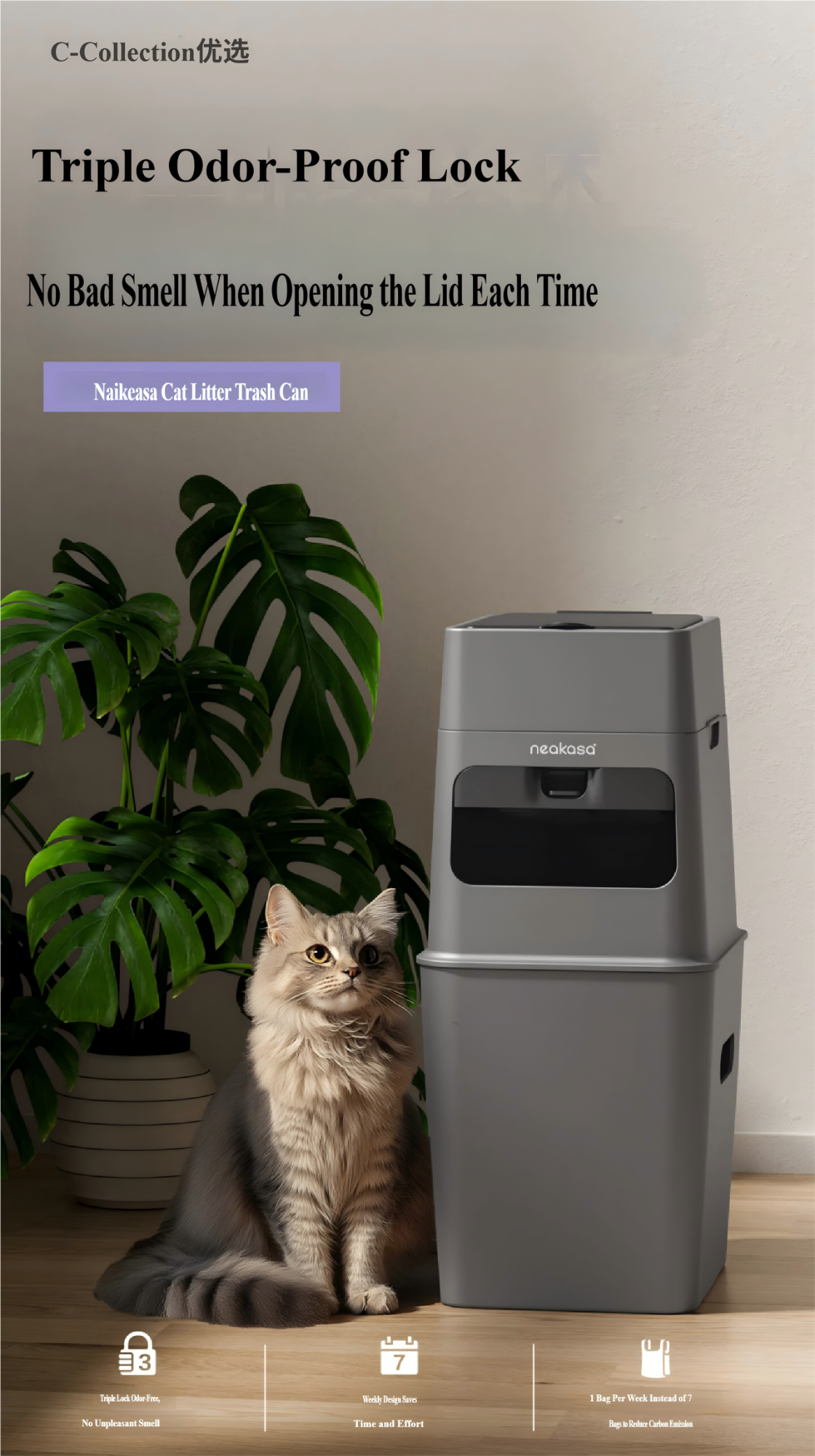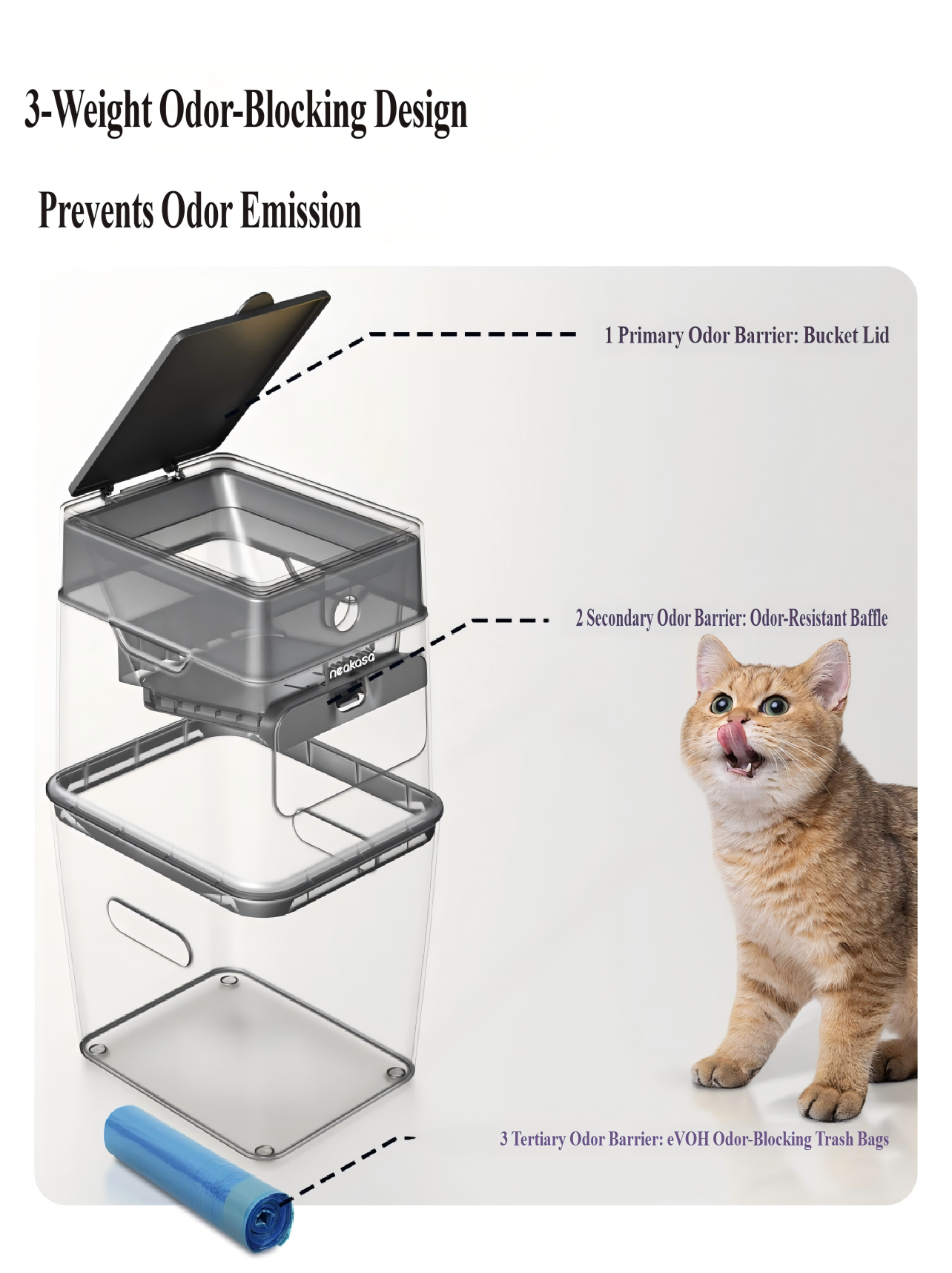 Cat Litter Odor-Sealing Trash Can — Airtight, Oxygen-Blocking, Bacteria-Locking, Professional Pet Waste Disposal Bin for Cats & Dogs