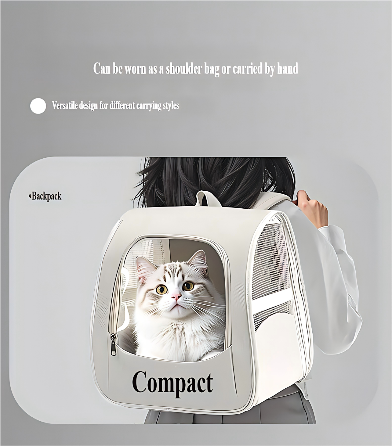 Prenosiva torba za mačke — Kavez za mačke za auto, Avionski odobrena putna kutija, Veliki prozračni i lagani ranac za mačke i pse [Ručno nošenje i upotreba u autu, višenamenski]