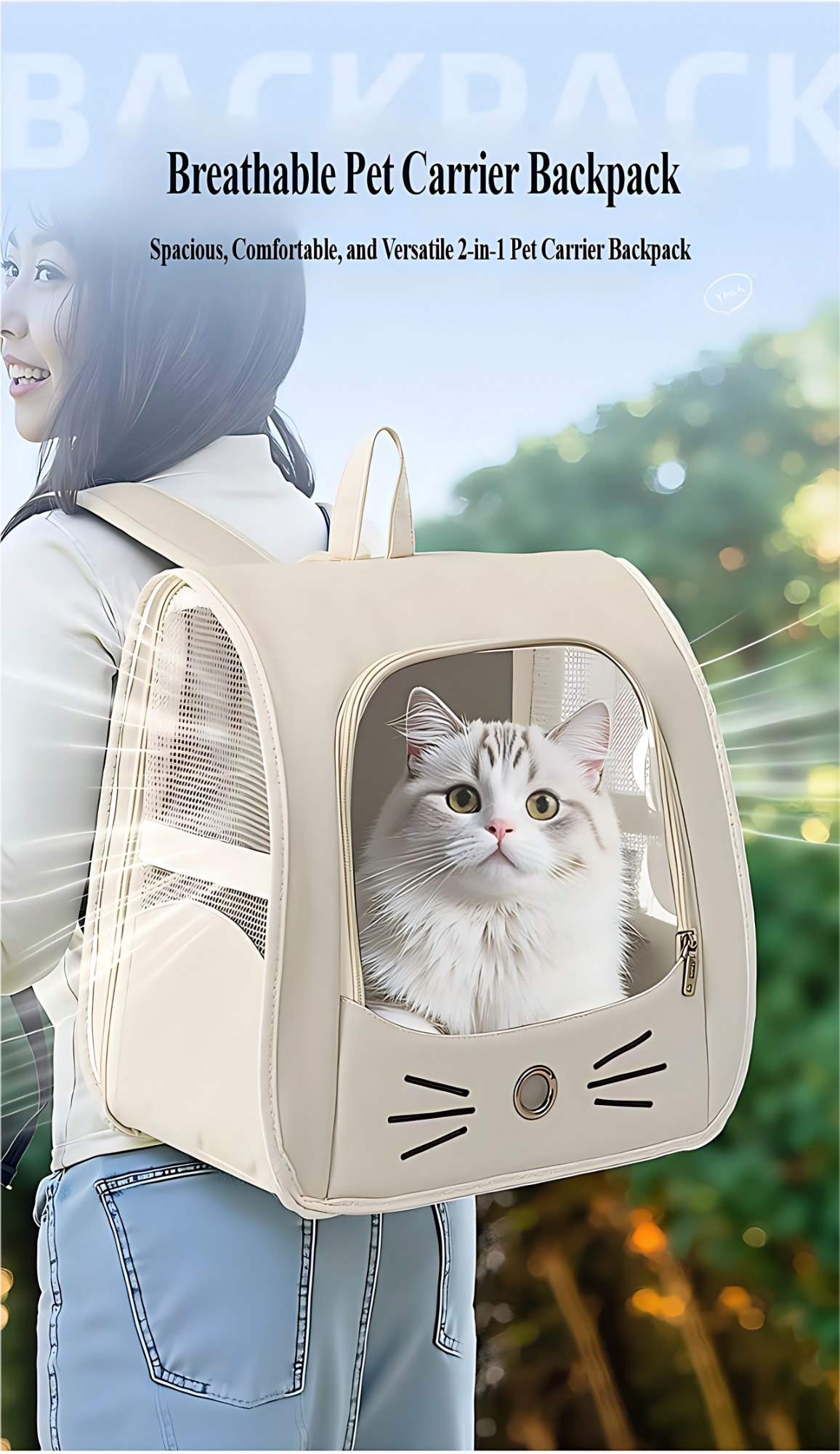 Prenosiva torba za mačke — Veliki dvostruki ranac za mačke sa svemirskom kapsulom, Avionski odobreni kavez za mačke, Ručna kutija za mačke, Ekstra veliki prostor [Udobno i prozračno]